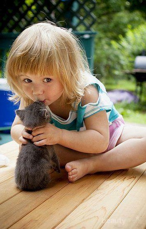 Kumpulan Foto Kebersamaan Anak Kecil dan Kucingnya