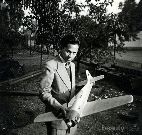 Foto: https://www.instagram.com/b.jhabibieHabibie Muda Bersama Replika Pesawat Ciptaannya