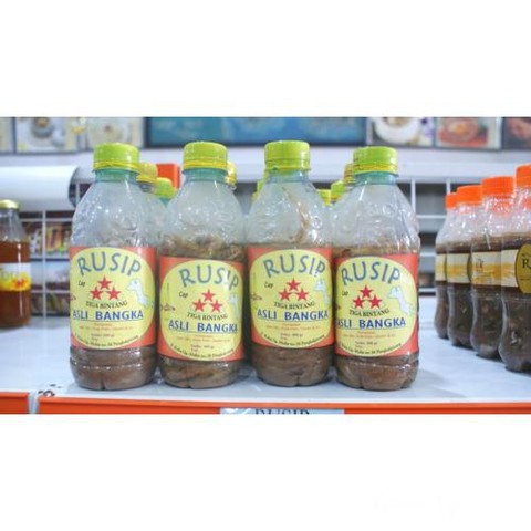 Keunikan rusip adalah, ikan bilis yang menjadi menu utamnya disajikan di dalam botol.