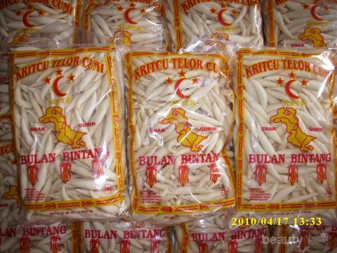 Terbuat dari telur cumi, kritcu adalah snack yang gurih. Kritcu banyak dijual ditoko oleh-oleh khas Bangka terutama di daerah Pangkal Pinang.