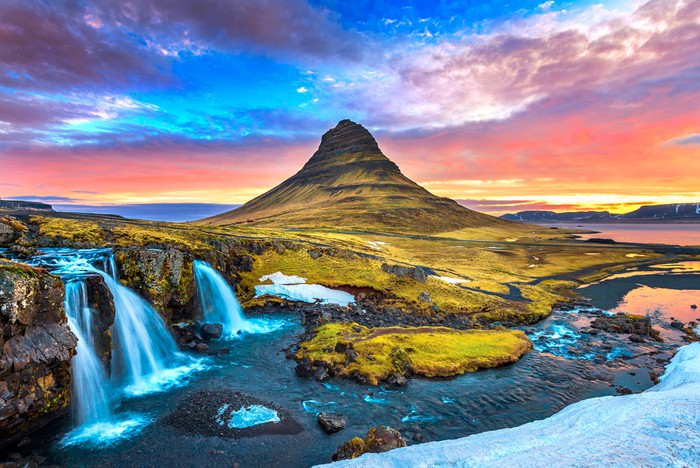 Kirkjufell, bukit ikonis di semenanjung Snæfellsnes, Islandia, telah memikat hati para turis dan fotografer dari seluruh dunia. Dengan ketinggian 463 meter, bukit ini menonjol karena bentuknya yang unik menyerupai kerucut atau menara gereja.