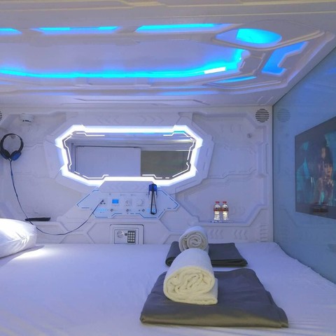 Terdapat kasur yang cukup nyaman serta bantal dan selimut. Lengkap dengan lampu personal di dalam kapsul dan satu colokan listrik. Ada juga tirai untuk memberikan privasi untuk setiap tamu di kamar kapsul.