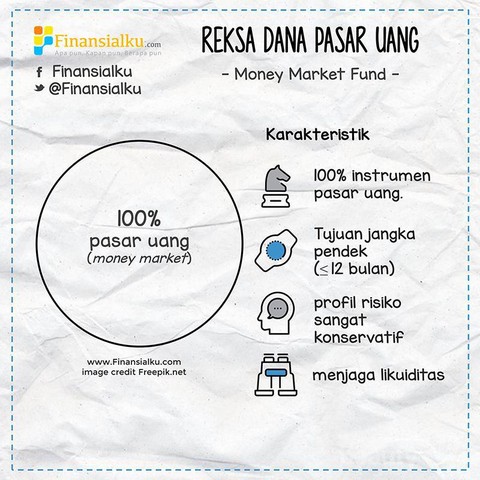 Reksa Dana jenis ini merupakan jenis investasi Reksadana yang paling aman karena resikonya yang paling kecil. Reksadana Pasar Uang menempatkan seluruh dana investasimu pada instrumen pasar uang. Dengan begitu tujuan dari reksa dana jenis ini adalah untuk memberikan keuntungan yang menarik melalui investasi pada instrumen pasar uang serta menurunkan tingkat risiko melalui diversifikasi penempatan instrumen pasar uang yang dipilih secara selektif. Hal ini juga bertujuan memberikan tingkat likuiditas yang tinggi untuk memenuhi kebutuhan dana tunai dalam waktu yang singkat.