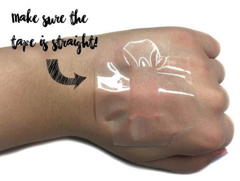 Hal pertama yang perlu kamu persiapkan adalah kosmetik yang ingin kamu swatch warnanya dan selotip. Setelah itu, potong-potong selotip menjadi empat bagian dan tempelkan di bagian tangan yang ingin kamu gunakan untuk swatch. Untuk menghilangkan rasa lengket selotip, cobalah untuk tempel-pasang dan lakukan berulang kali hingga selotipnya tidak terlalu lengket di kulit. FYI, selotip yang terlalu lengket bisa merusak hasil akhir swatch ketika kamu ingin melepaskan selotipnya lho. So, pastikan untuk menghilangkan sedikit lem pada selotip kamu terlebih dahulu ya sebelum memulai swatch.