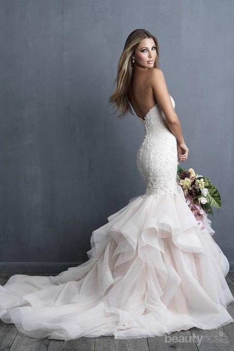 Foto: https://id.pinterest.com/Sedikit klasik dan juga menggoda, gaun pengantin model putri duyung dengan potongan ala korset di bagian torso adalah pilihan yang sempurna untuk pengantin modern. Kamu lebih suka menonjolkan siluet tubuh kamu atau gaya vintage sekalipun tetap akan menjadi pilihan terbaik.