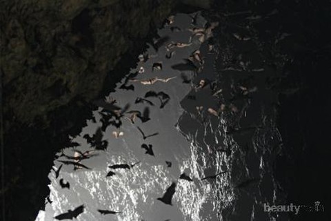 Foto: https://www.indonesiakaya.com/kanal/detail/menjelajahi-pulau-sangiang-di-selat-sunda Di bagian timur pulau terdapat Gua Kelelawar yang menawarkan pengunjung sebuah pesona melihat langsung kehidupan langsung mamalia terbang ini di dalam gua. Keunikan gua yang harus digapai dengan jalan menembus hutan ini terlihat pada bagian ujungnya. Lautan lepas dengan gulungan ombak yang sesekali muncul menerjang sisi tepi dinding gua menjadi panorama yang tidak dapat disaksikan pada gua-gua umumnya. Jika beruntung, pengunjung dapat melihat ikan hiu yang hilir mudik menunggu kelelawar jatuh untuk menjadi santapan.https://www.indonesiakaya.com/kanal/detail/menjelajahi-pulau-sangiang-di-selat-sunda |