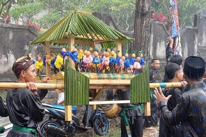 Tradisi ini dilakukan dengan mengarak hiasan berbentuk bunga, yang terbuat dari kertas warna-warni, dan telur di bagian atasnya. Tradisi ini disebut sebagai simbol kelahiran.