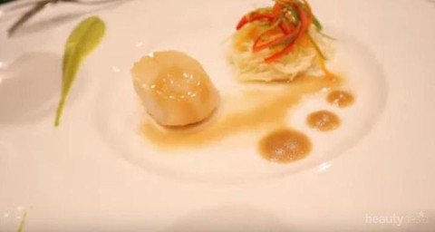 Menyajikan konsep menu makanan ala barat sudah pasti lengkap ya, ada makanan pembuka, makanan utama, dan penutupnya. Untuk makanan pembuka ini ada Hokkaido Scallop, Truffled Angel Hair, dan Green Pea Emulsion.