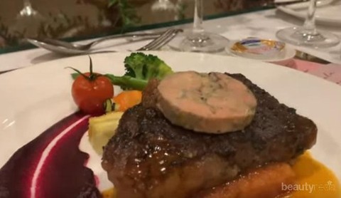Nah, untuk hidangan utama sudah pasti mereka nggak mau salah pilih donk, menyajikan makanan untuk tamu istimewa pasti harus memilih menu yang istimewa juga. Untuk hidangan utama ini ada Baked Wagyu Beef Sirloin, Fole Gras Pate Topping, Brioche Croute Glazed, Baby Vegetables, dan Truffle Potato Gratin.