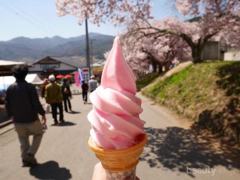 Toko-toko kecil di tempat wisata biasanya juga menjual berbagai macam rasa es krim, termasuk rasa sakura yang hanya dijual selama musim semi.