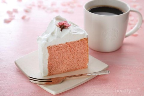 Selain minuman, Starbucks juga merilis chiffon cake sakura berlapis krim putih yang tebal.