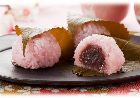 Ketan berisi pasta kacang merah yang dibalut daun sakura yang agak asin ini merupakan makanan wajib saat melihat bunga sakura setiap tahunnya.