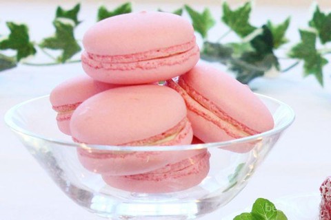 Macaron berwarna pink dan berisikan krim yang lembut. Rasa manisnya akan meleleh di dalam mulut.