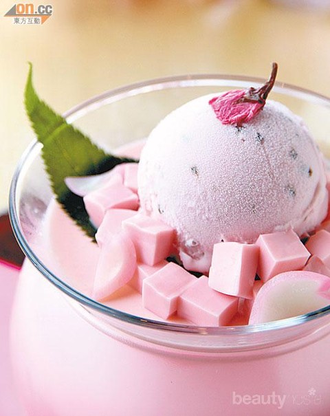 Bayangkan puding berwarna pink yang kaya akan rasa susu dipadu dengan es krim lembut yang juga berwarna pink. Hmm, yummy!