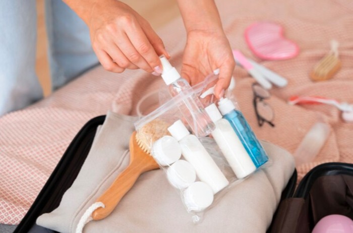 Siapa yang sering kebablasan bawa skincare satu set? Saat traveling, cukup bawa secukupnya! Gunakan botol-botol mini travel-size untuk memindahkan produk favoritmu, mulai dari pelembap, serum, hingga shampoo. Selain lebih ringan, tips ini juga dapat meminimalkan risiko tumpah. Jangan lupa masukkan dalam plastik ziplock untuk menghindari drama koper basah gara-gara skincare bocor. Praktis, rapi, dan aman!
