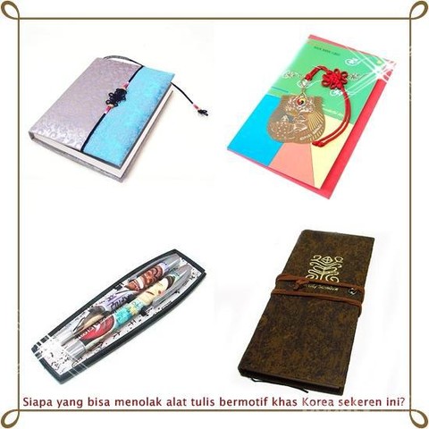 Foto: https://dearmarintan.com/2012/04/08/daftar-oleh-oleh-wajib-beli-di-korea-selatan/ Set alat tulis pasti sangat berguna dan bisa dipakai baik di kantor, kampus, sekolah, atau di rumah. Banyak teman yang ingin memiliki alat-alat tulis bermotif khas Korea, bisa berupa pulpen, agenda, buku catatan, pembatas buku, stiker dan ragam alat tulis lainnya.https://airport.co.id/indoair/daftar-oleh-oleh-wajib-beli-di-korea-selatan/ |