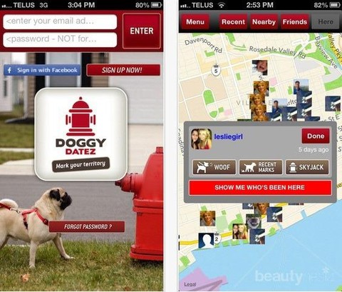 Tersedia untuk iOS dan Android, aplikasi dengan platform social mobile ini adalah aplikasi pemilik anjing dan anjingnya mencari teman. Ide utamanya adalah "menandai suatu wilayah" dan melihat siapa yang berkunjung ke wilayah tersebut. Kamu juga bisa mencari pengguna DoggyDatez berdasarkan jenis kelamin, umur, jenis kelamin anjing, usia anjing dan atau jenis peranakan anjing.