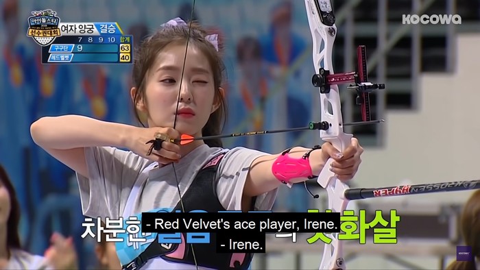 Di cabang panahan putri, Irene Redvelvet berhasil mencetak sejarah. Saat ISAC 2018, Irene secara khusus sukses melesatkan panahnya tepat di target. Memang momen ini terlihat biasa saja. Namun ajaibnya, panah yang dilesatkannya pun sampai menembus lensa kamera yang ditetakkan tepat dibelakanng target.