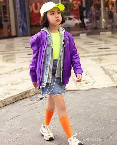 Foto: https://www.instagram.com/annie.khanhan2011Tampil menggunakan layer pada bagian atasnya nggak membuat Annie Khanh An mati gaya, Ladies. Model cilik ini tampaknya gemar sekali mix and match warn-warna baju, ya. Dalam foto ini Annie memilih warna hijau stabilo pada kaus dan topinya, lalu perpaduan jaket jeans dan bomber jacket ungu, kemudian denim skirt dan kaus kaki orange membuat penampilannya colorful seperti anak-anak kebanyakan.