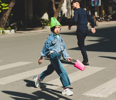 Foto: https://www.instagram.com/annie.khanhan2011Nggak hanya kece di acara fashion show, Annie Khanh An juga kece saat jalan-jalan, lho. Dalam foto tersebut, Annie Khanh An tampak kece menggunakan street style berupa jaket jeans yang oversize, kemudian celana jeans dan sepatu sneakers putih. Gaya street ala Annie Khanh An ini semakin kece dengan kehadiran beanie berwarna hijau stabilo.