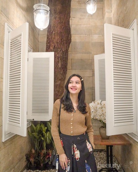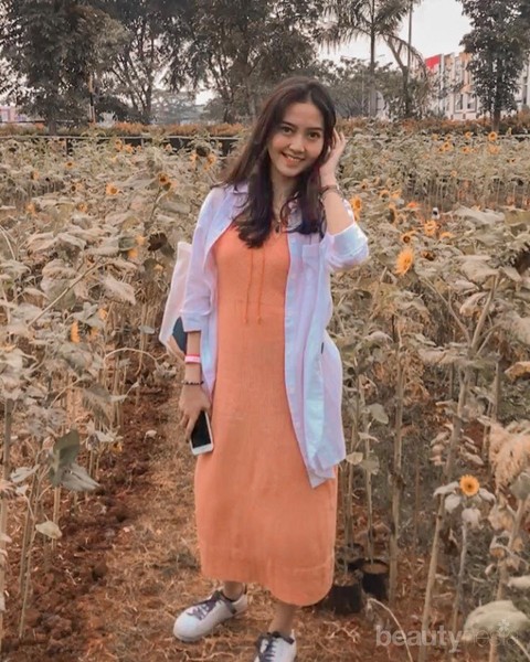 Siapapun tentu butuh liburan agar tidak terlalu stres dengan rutinitas harian. Ini adalah potret Jerseca ketika berlibur dan mengunjungi kebun bunga matahari. Uniknya, Jerseca mengenakan outfit yang sederhana dan senada dengan bunga matahari yang menjadi latar belakangnya.