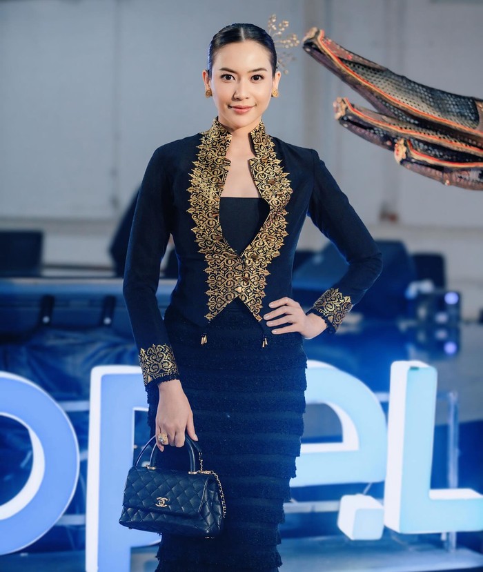 Puteri Indonesia 2014 ini tampil memukau dengan balutan gaun hijau dari designer Stella Lunardy. Ia kembali bersinar di red carpet Cannes 2025 dalam look kedua, yaitu busana couture rancangan Omran Osman.