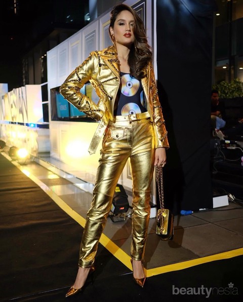 Foto: https://www.instagram.com/claurakiehl/Wajah cantik Cinta Laura tampak begitu bersinar menggunakan outfit berwarna gold. Outfit yang digunakan Cinta Laura ini terdiri dari long pan, outer dan sepatu dengan warna gold. Cinta juga memadukan outfit goldnya dengan atasan berwarna hitam dengan gambar kepingan keset lingkaran. Penampilan Cinta Laura pastinya selalu dinantikan oleh para penggemarnya.