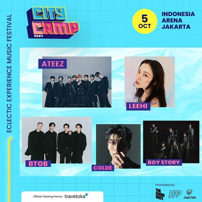 City Camp 2024 merupakan sebuah festival K-Pop berbasis konser yang baru pertama kali diadakan di Indonesia. Tak tanggung-tanggung, festival musik ini menghadirkan sederet musisi kenamaan asal Negeri Ginseng di antaranya ATEEZ, BtoB, BOY STORY, Colde, hingga Lee Hi.