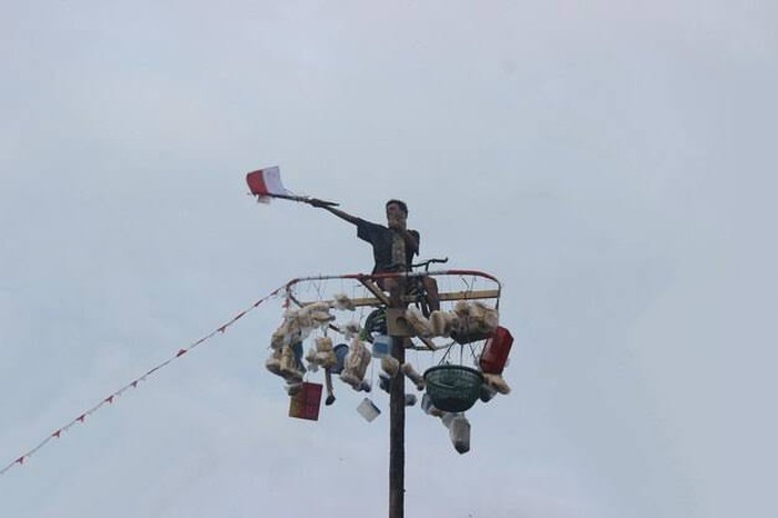 Bayangkan saja, hadiah di atas pohon itu ibarat kemerdekaan, untuk mendapatkannya, semua peserta harus bersatu. Mereka saling bantu dan berkorban. Tak bisa sendirian. Harus kompak!