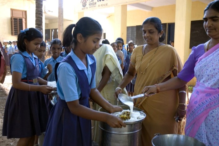 Sejak tahun 1995, program makan siang di India telah menyediakan makan siang untuk 125 juta anak berusia 6-14 tahun. Dengan biaya sebesar USD2,8 miliar atau setara Rp43,8 triliun dari pemerintah, program ini memastikan bahwa setiap anak berhak mendapat makanan yang layak.
