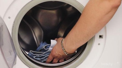 - Setelah mencuci, keringkan celana jeans menggunakan pengering dengan suhu yang tinggi.