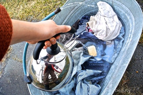 Foto: https://www.stoneaxeherbals.com/2016/03/how-to-do-laundry-without-washing.html- Cara pertama kamu bisa cuci atau rendam celana jeans wanita kamu dengan air panas selama 15 menit lalu keringkan.