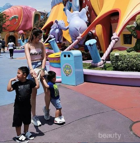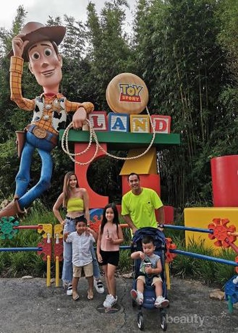 Nia Ramadhani terlihat kompak bersama sang suami dan ketiga anaknya. Mereka berfoto di depan patung Woody di film Toy Story dan terlihat sangat happy. Enggak hanya foto di depan patungnya saja, namun family goals yang satu ini juga menaiki banyak permainan yang tersedia di area Toy Story, Disneyland.