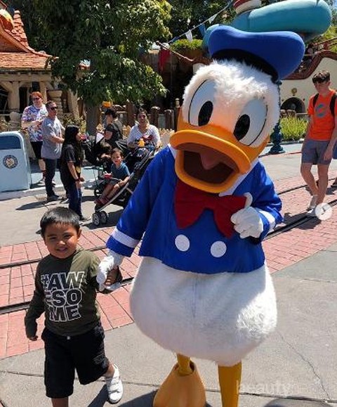 Selain permainannya yang seru, Nia beserta keluarga juga bertemu banyak karakter Disney. Salah satunya adalah Donald Duck. Pada akun Instagram @ramadhaniabakrie, Nia mem-posting foto putra ketiganya yang bernama Magika Zalardi Bakrie sedang bersama Donald Duck. Magika terlihat sangat happy bergandengan dengan Donald Duck. Selain itu, anak-anak Nia juga berfoto dengan berbagai karakter Disney lainnya di Disneyland. Sangat seru ya, Beautynesian?