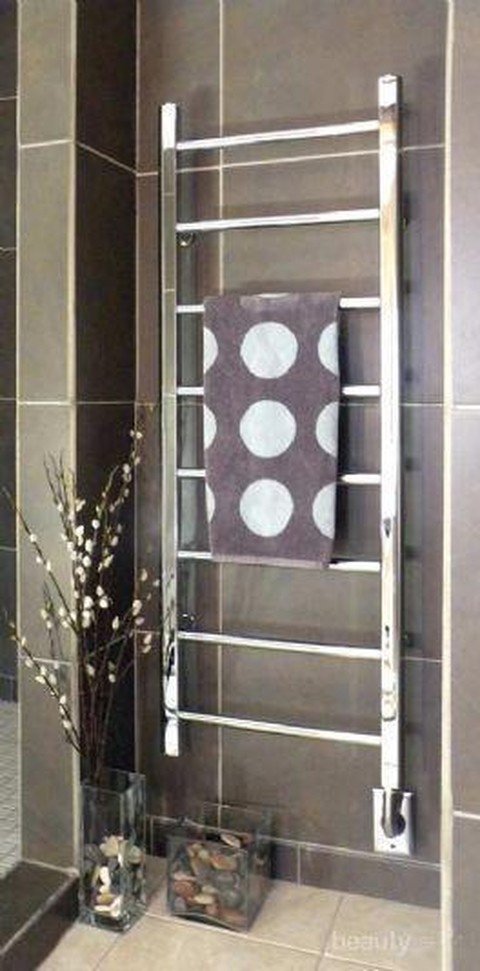 Untuk membuat gantungan baju dan handuk, kamu bisa taruh di belakang pintu kamar mandi atau pilihlah desain gantungan yang tak memakan tempat namun tetap terlihat kece. Seperti ini contohnya!