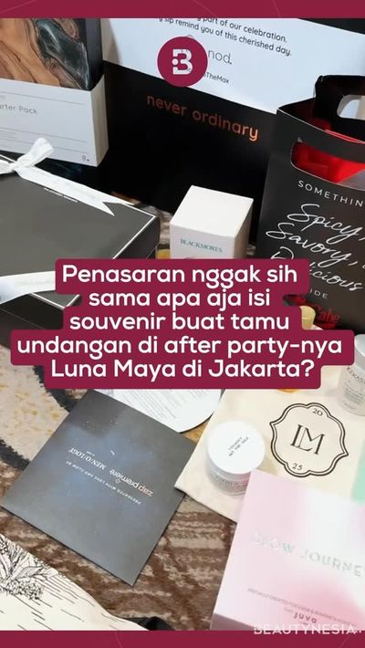Kita intip yuk, ada apa aja di dalam souvenir pernikahan Luna Maya & Maxime Bouttier! 💍🎁