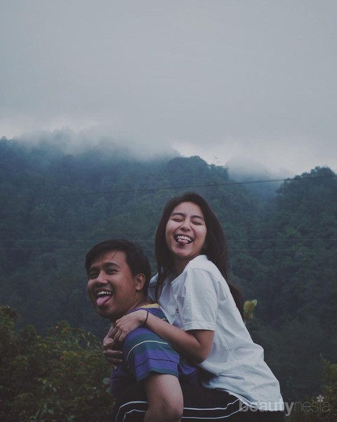 Momen saat berlibur bersama di alam pun jangan lupa diabadikan dengan kamera ya! Seperti Joshua dan Clairine yang memilih mengabadikan foto mereka di alam dengan memamerkan pose lucu dalam posisi Clairine yang digendong oleh Joshua! So sweet!