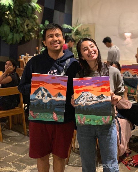 Momen bahagia juga bisa diabadikan saat kita membuat suatu karya bersama. Foto yang diunggah tanggal 5 Juli 2019 ini menunjukkan Joshua dan Clairine yang memamerkan hasil karya lukisannya ini.