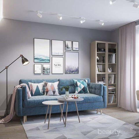 1. Lebih baiknya kamu memainkan dua warna yang soft seperti putih dan baby blue, untuk menghindari kesan monoton dan memberi kesan luas pada rumah kamu.