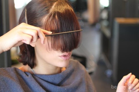 - Jika Ladies ingin memotong rambut dalam keadaan kering, cuci dan keringkan rambut, belahlah rambut seperti biasa, kemudian tatalah semirip mungkin dengan gaya yang biasa .