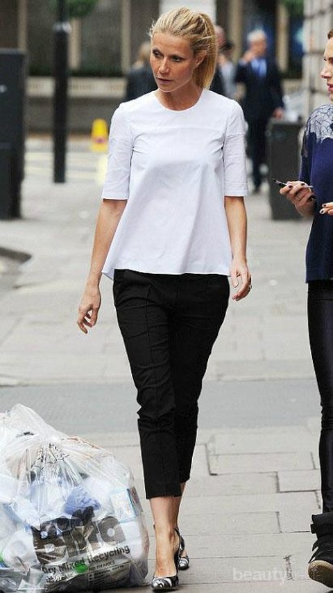Terakhir, kamu bisa mengadopsi gaya berpakaian Gwyneth Paltrow yang kasual tapi tetap chic ini. Untuk style satu ini, kamu enggak perlu repot memilih pakaian yang kamu gunakan. Cukup pastikan bahwa setidaknya ada satu fashion item yang cukup unik dan menonjol. Seperti Gwyneth Paltrow yang memadukan blus cantik dengan celana hitam 7/8, atau ketika ia mengenakan kemeja flannel dan rok setutut biasa yang dilengkapi dengan her super black sunglasses dan boots hitamnya yang menarik perhatian. It’s easy but cool, right?