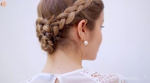 Double Dutch braid merupakan gaya rambut kepang pada 2 sisi kepala yang dimulai dari bagian atas. Olivia Wild mengkombinasikan teknik double Dutch braid dengan cepol untuk tampilannya yang elegan pada ajang Oscar 2016. Ingin meniru gaya rambutnya? Yuk, ikuti tutorial dari channel YouTube Golden Locks berikut ini!