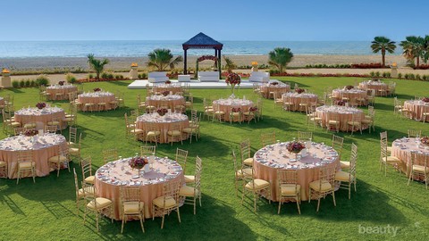 Foto: IstimewaRitz Carlton Dubai ini menawarkan pasangan yang ingin menggelar resepsi pernikahan mewah dengan spesialisasi taman dan pantai. Berlokasi di JBR The Walk, pantai di Ritz Carlton Dubai memberikan set modern dan elegan di antara gedung pencakar langit Dubai Marina. Venue outdoor ini berada di antara lanskap taman, dengan pemandangan laut biru dan Arabian Gulf.