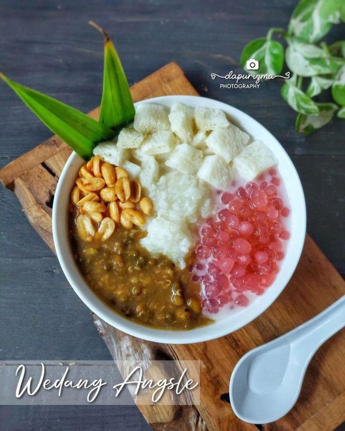 Sekilas, tampilan angsle hampir mirip dengan wedang ronde. Namun yang membedakan adalah kuahnya, angsle memiliki kuah bersantan dengan rasa manis. Aroma khas santan dan pandan membuat minuman ini begitu mengunggah selera.