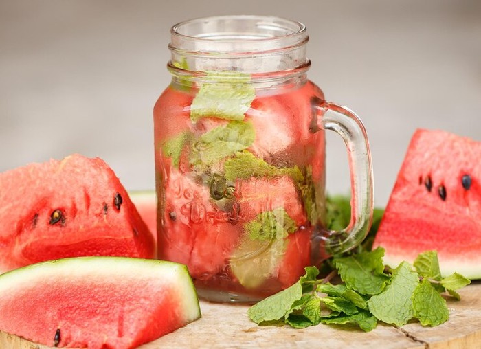Sebuah penelitian yang diterbitkan di Nutrients menemukan kaitan antara semangka dengan penurunan tekanan darah, penurunan BMI, dan penurunan berat badan. Sementara daun mint bermanfaat untuk mengurangi kecemasan dan mengubah lemak menjadi energi.Â