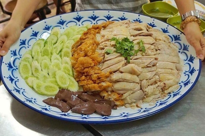 Nggak kalah besar, sebuah tempat makan sederhana bernama ‘Sri Leung Pochana’ yang terletak di dekat stasiun BTS Saphan Kwai, Thailand ini memiliki menu khao man gai (nasi ayam) raksasa.