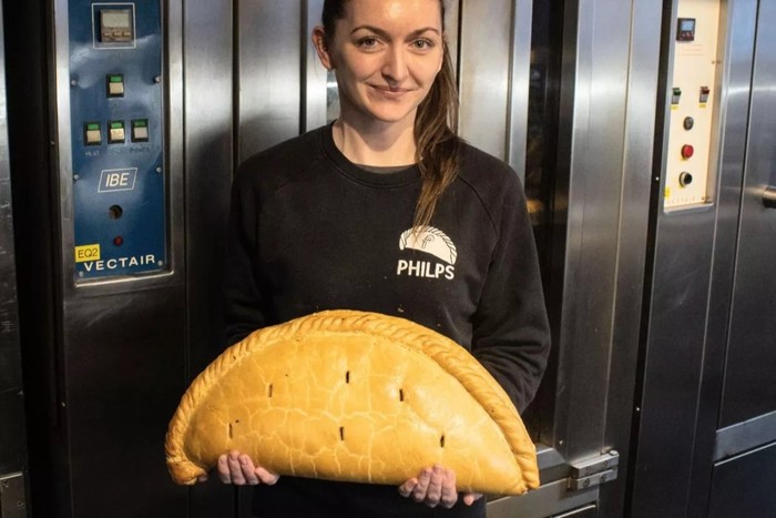 Sebuah toko pastry di Inggirs hadirkan menu yang tak biasa, bahkan tak masuk akal. Kudapan berupa cornish pasty yang bentuknya mirip dengan pastel khas Indonesia ini dibuat hingga melebihi ukuran tangan manusia dewasa.