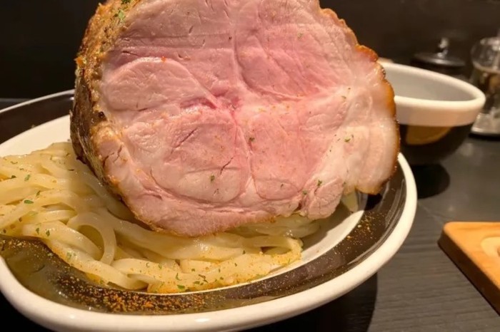 Menu tsukemen di restoran ini menyajikan ramen dengan daging panggang berukuran 800 gram. Harga yang ditawarkan untuk semangkuk ramen dengan topping daging babi panggang jumbo ini pun terbilang cukup fantastis, yakni seharga 3.850 Yen atau sekitar Rp 400 ribuan.