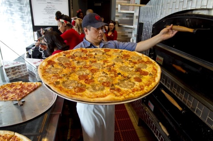 Bosan dengan ukuran pizza yang biasa-biasa saja? Di Las Vegas, Amerika Serikat, ada restoran bernama ‘Pin-Up Pizza’ yang menyajikan pizza super besar dengan diameter sekitar 76 cm. Tentunya jauh lebih besar dari ukuran pizza pada umumnya
