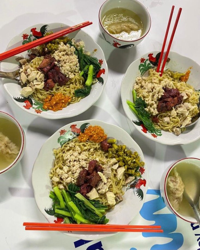 Uniknya, penyajian bakmi di sini diletakkan di atas piring cap ayam jago yang ikonis. Hal tersebut justru menjadi salah satu daya tarik bagi pengunjung untuk datang.